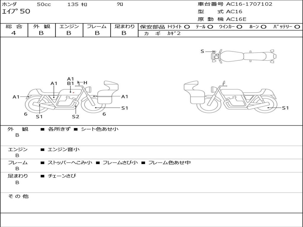 | Номер рамы / VIN | AC16-1707102 |
