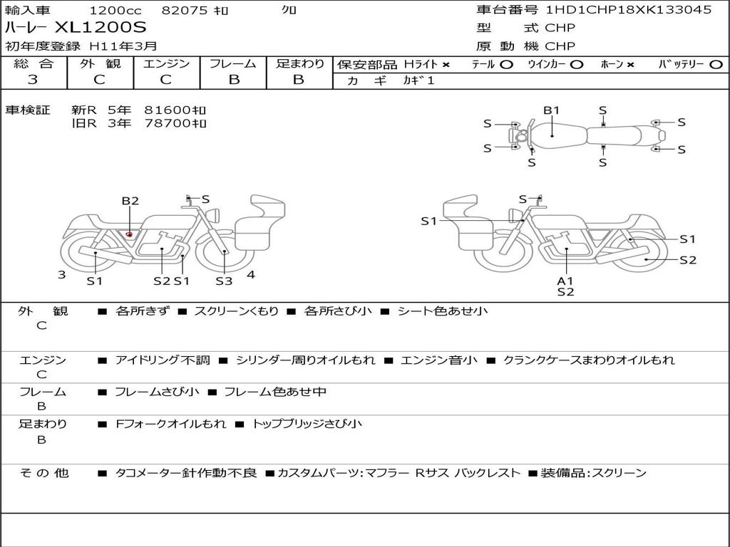 Номер рамы / VIN | 1HD1CHP18XK133045 |