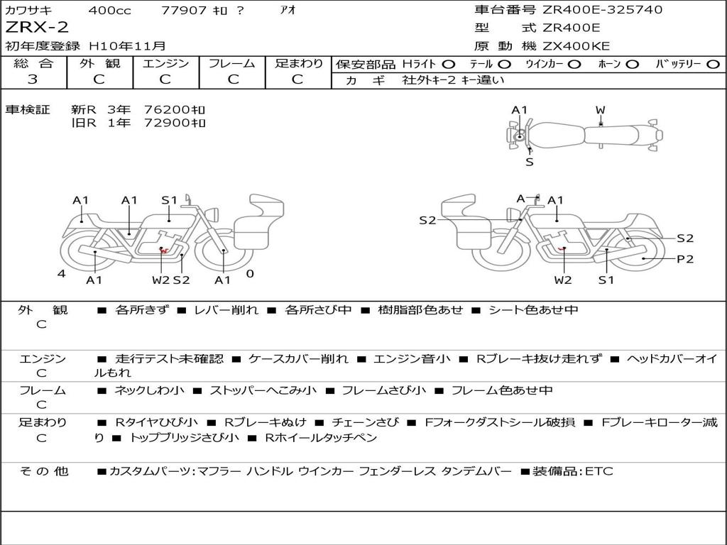 | Номер рамы / VIN | ZR400E-325740 |