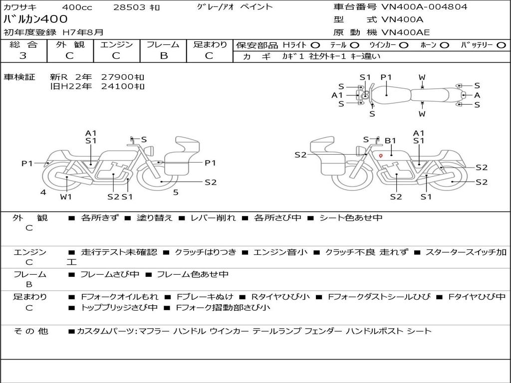 | Номер рамы / VIN | VN400A-004804 |