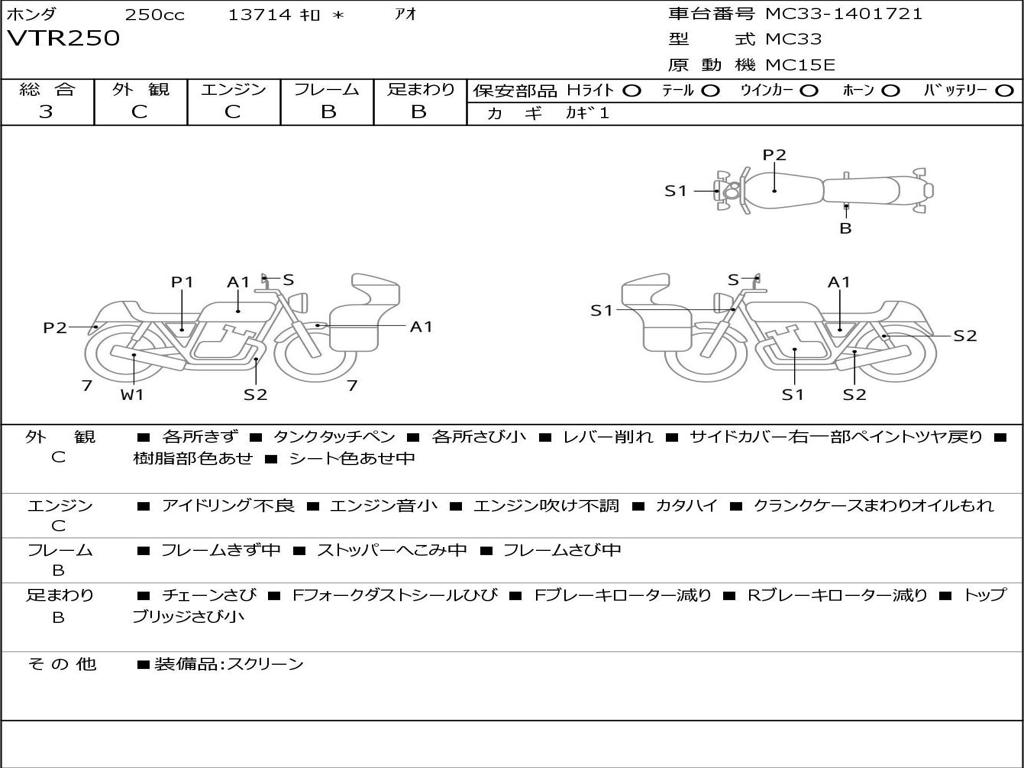 | Номер рамы / VIN | MC33-1401721 |