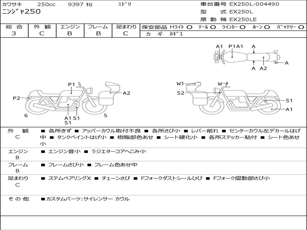 | Номер рамы / VIN | EX250L-004490 |