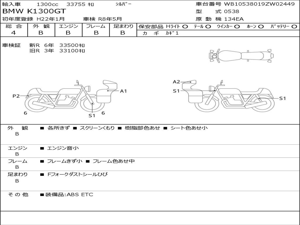 | Номер рамы / VIN | WB10538019ZW02449 |