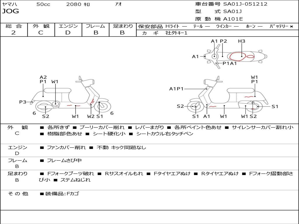 | Номер рамы / VIN | SA01J-051212 |