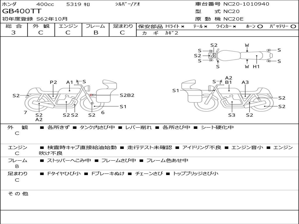 | Номер рамы / VIN | NC20-1010940 |