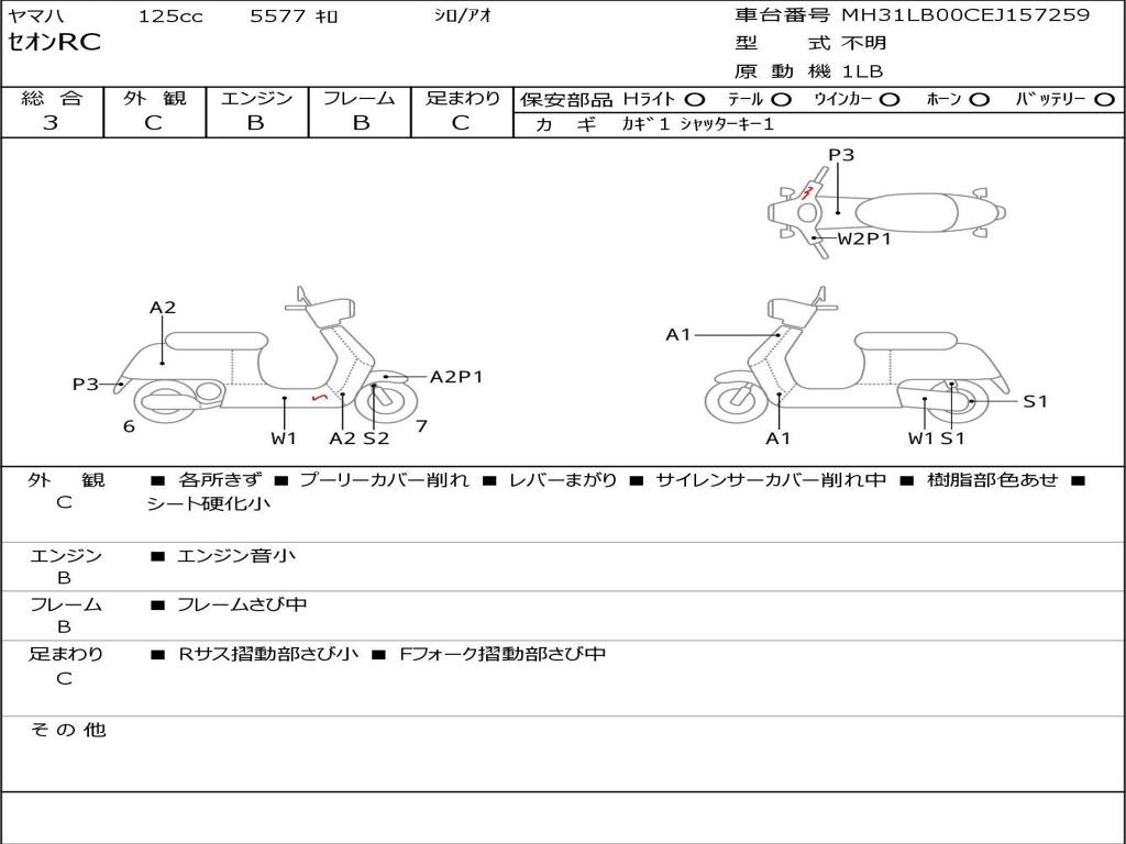 | Номер рамы / VIN | MH31LB00CEJ157259 |