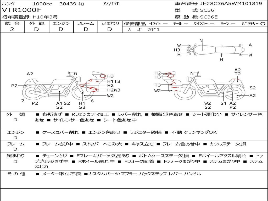 | Номер рамы / VIN | JH2SC36A5WM101819 |