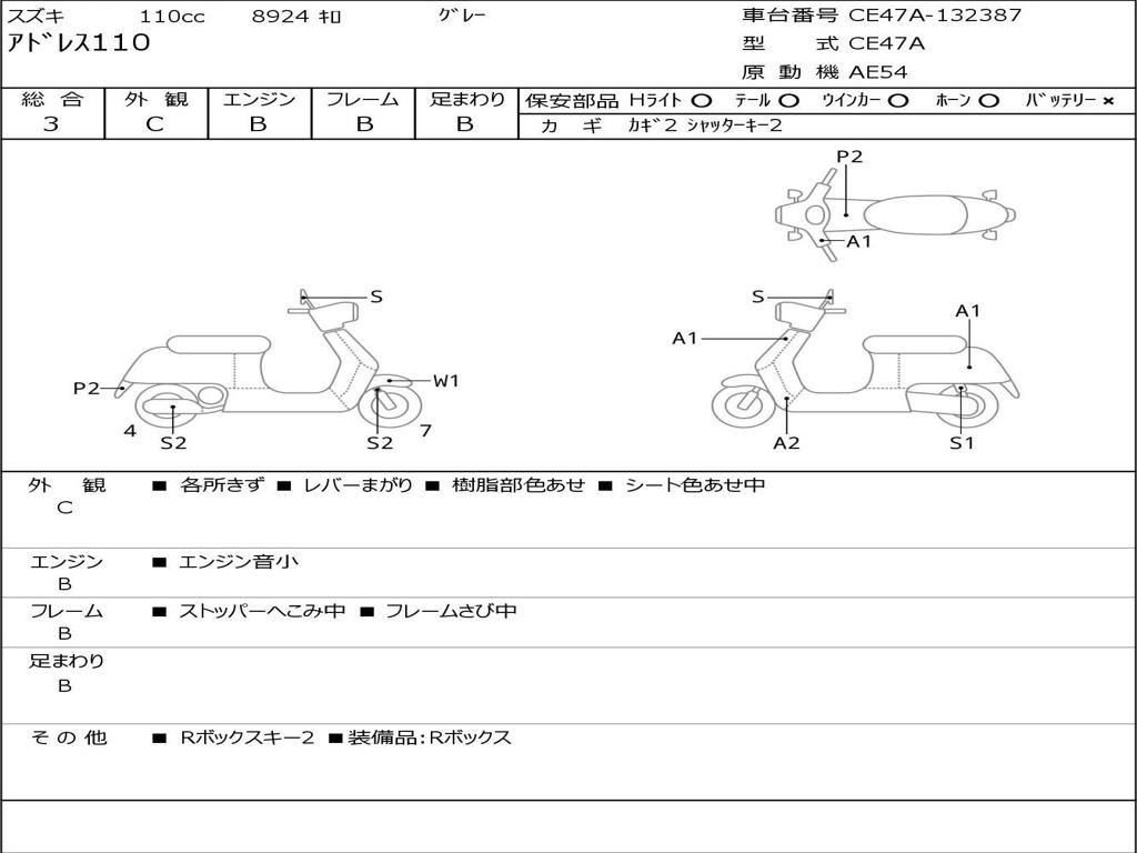| Номер рамы / VIN | CE47A-132387 |