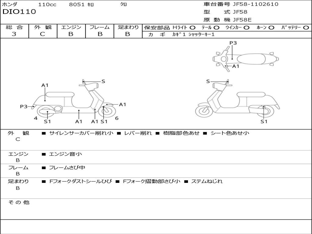 | Номер рамы / VIN | JF58-1102610 |