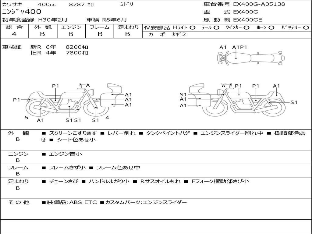 | Номер рамы / VIN | EX400G-A05138 |