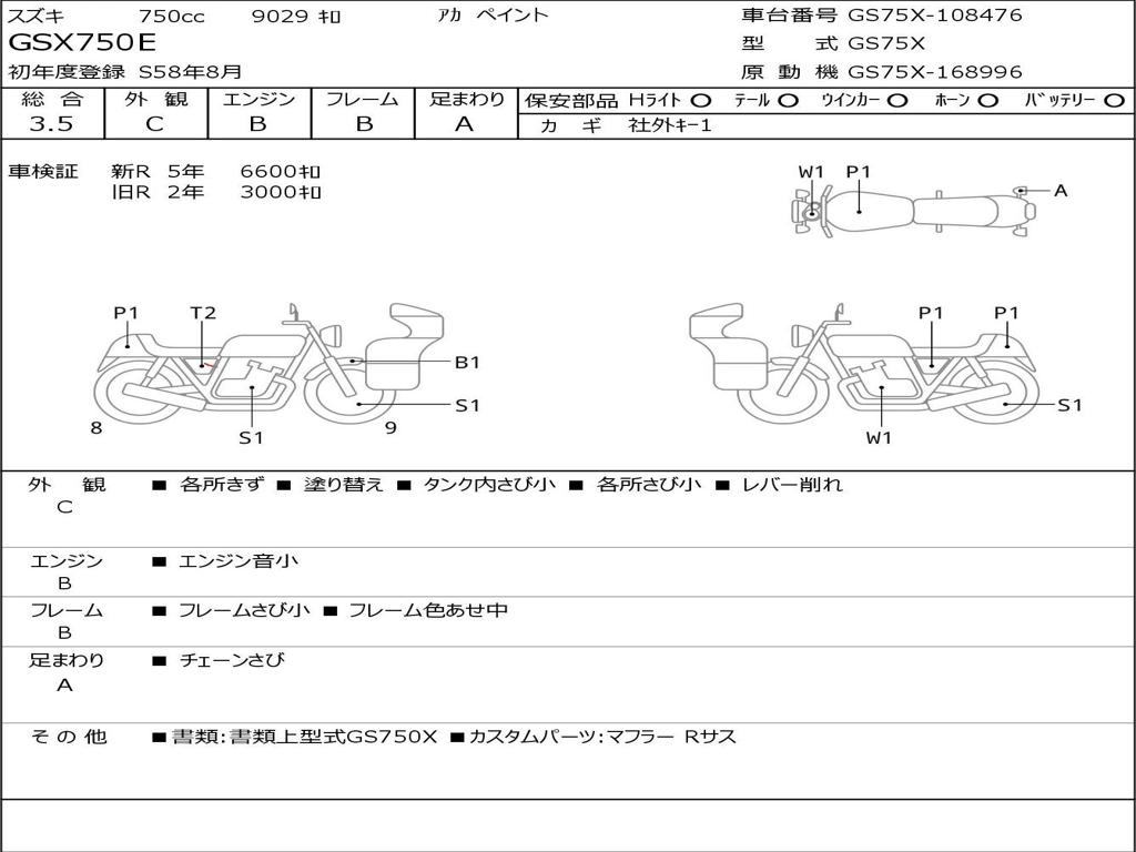 | Номер рамы / VIN | GS75X-108476 |