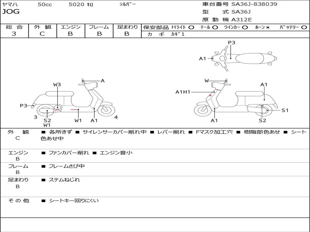 | Номер рамы / VIN | SA36J-838039 |