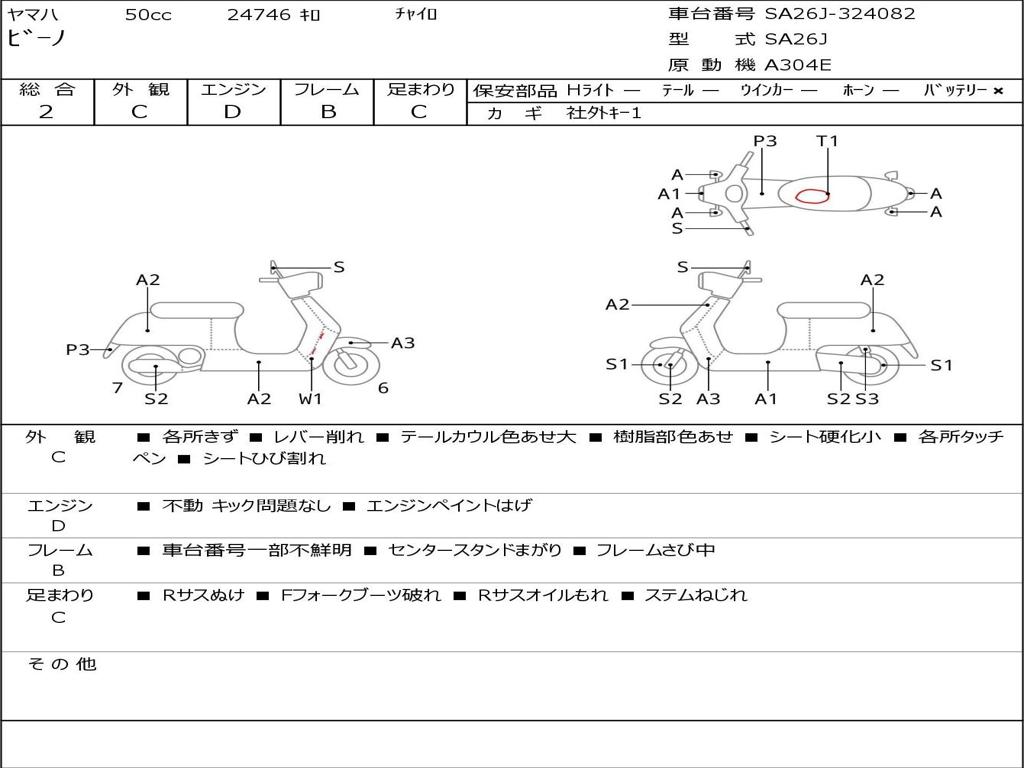 | Номер рамы / VIN | SA26J-324082 |