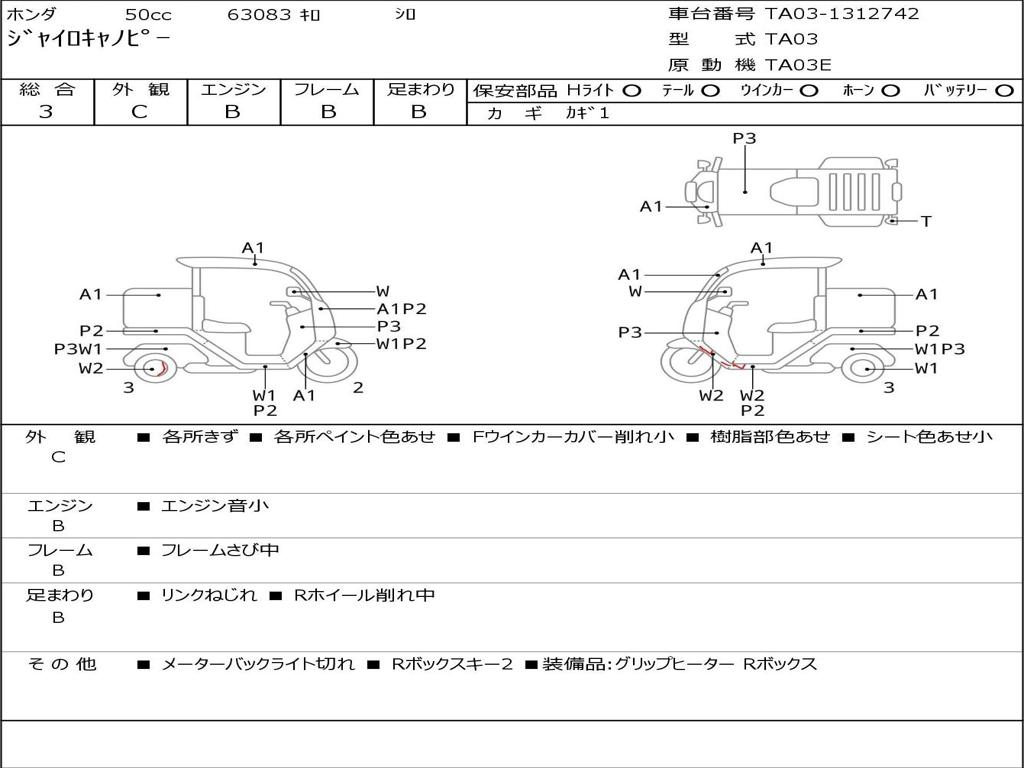 | Номер рамы / VIN | TA03-1312742 |