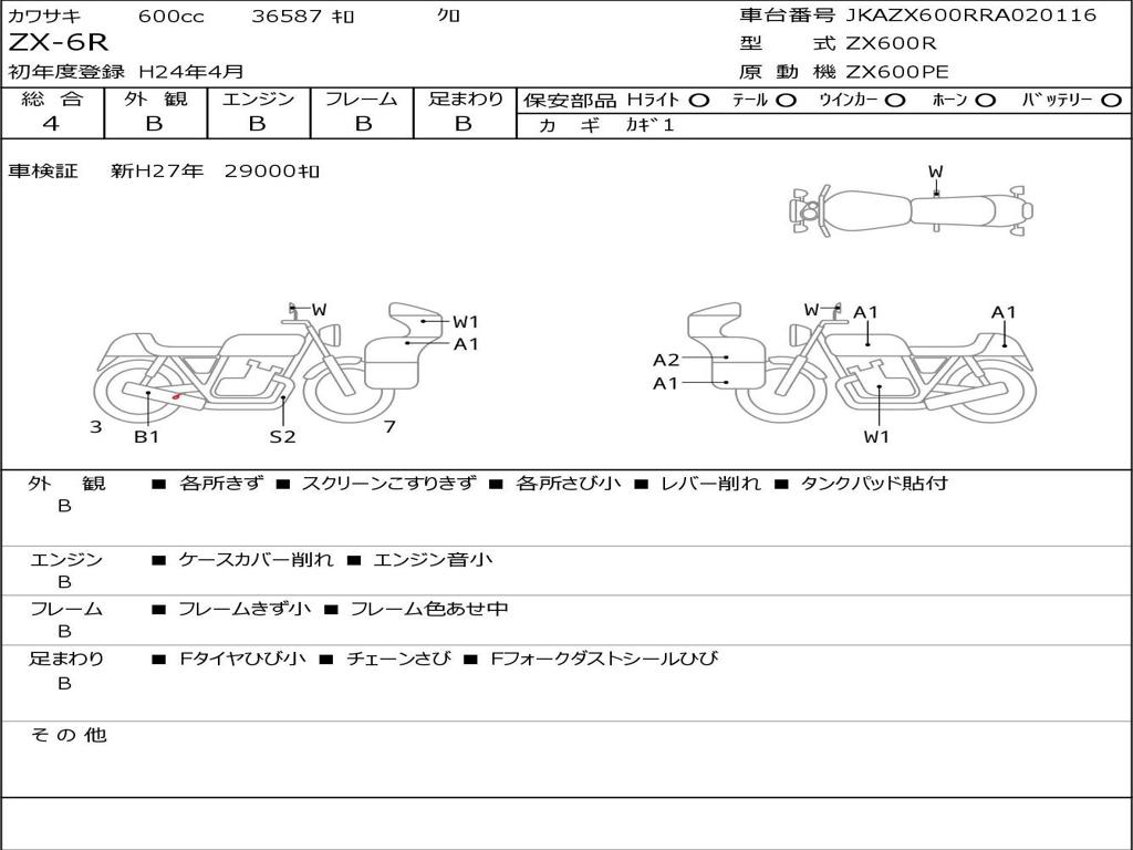 | Номер рамы / VIN | JKAZX600RRA020116 |