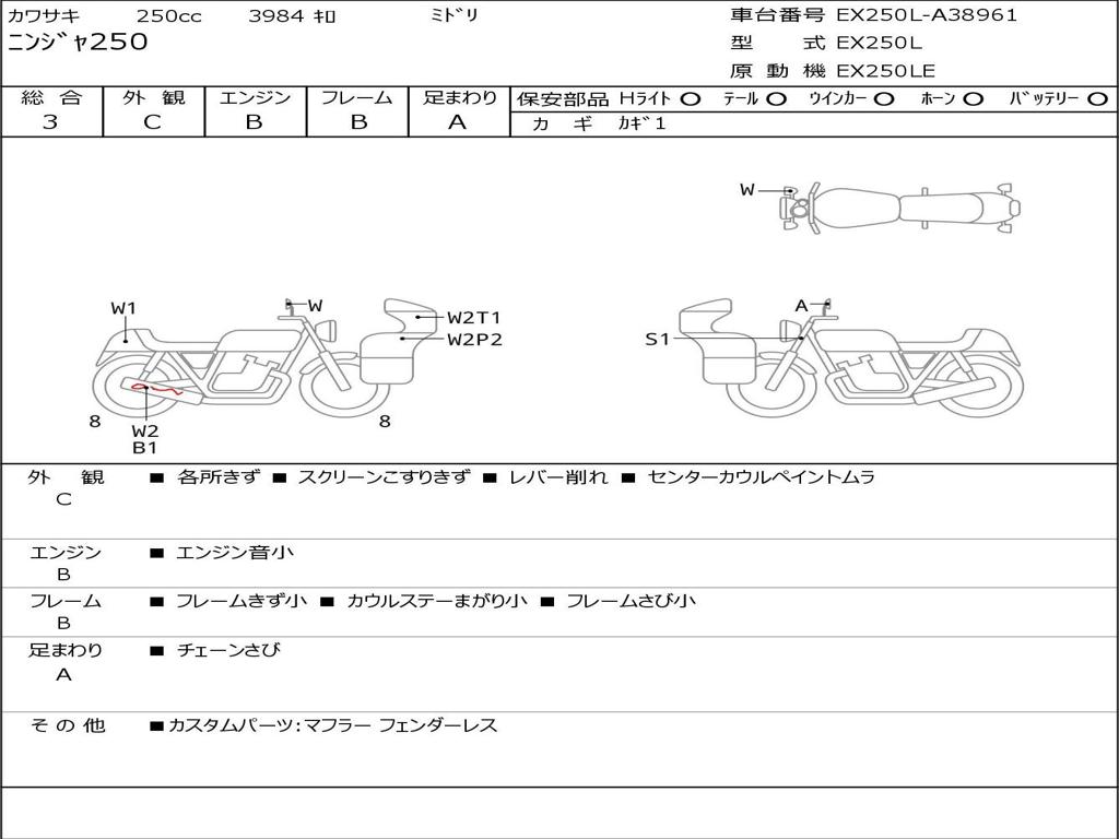 | Номер рамы / VIN | EX250L-A38961 |