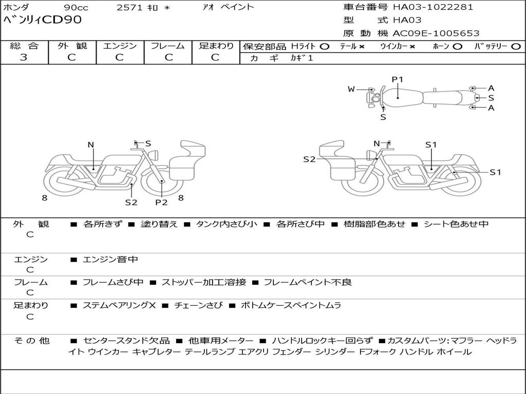 | Номер рамы / VIN | HA03-1022281 |