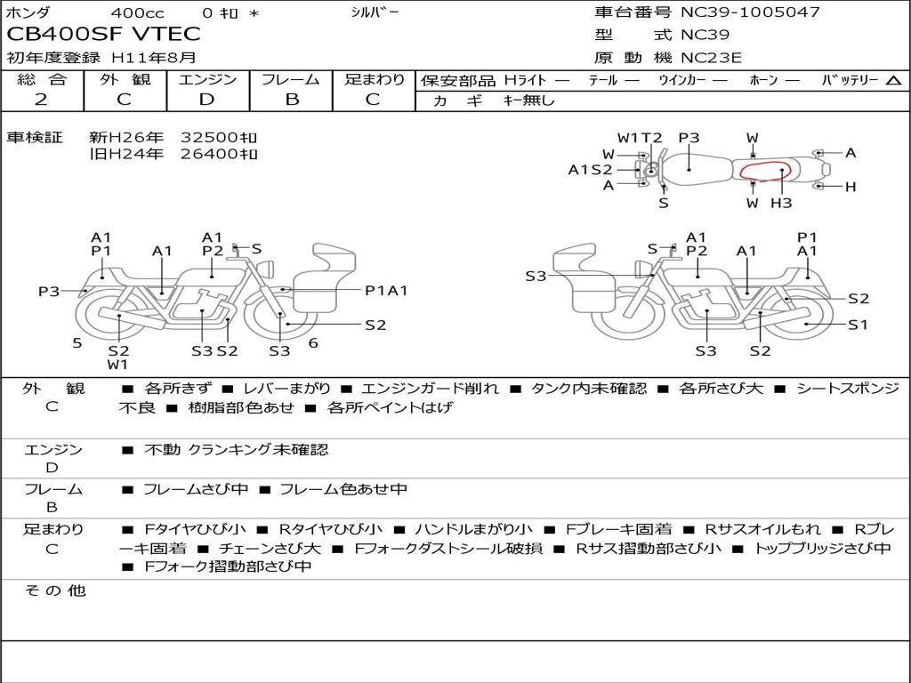 | Номер рамы / VIN | NC39-1005047 |
