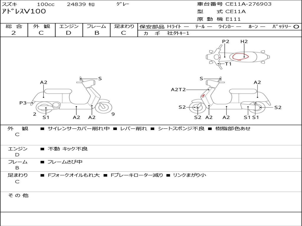 | Номер рамы / VIN | CE11A-276903 |