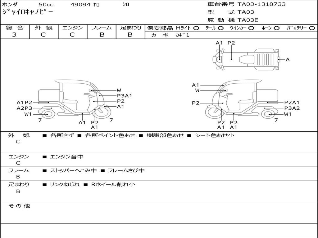 | Номер рамы / VIN | TA03-1318733 |