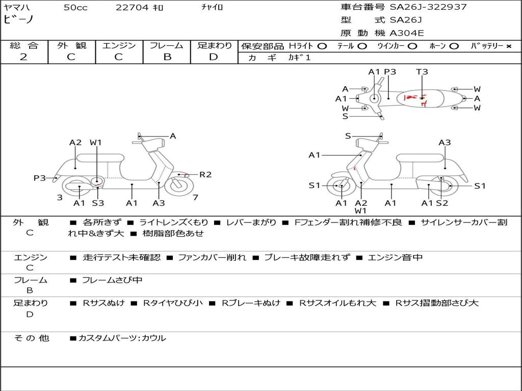 | Номер рамы / VIN | SA26J-322937 |