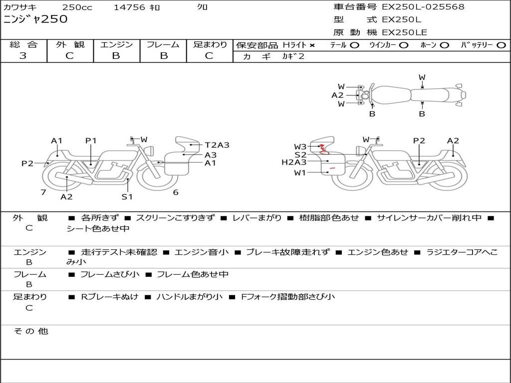 | Номер рамы / VIN | EX250L-025568 |