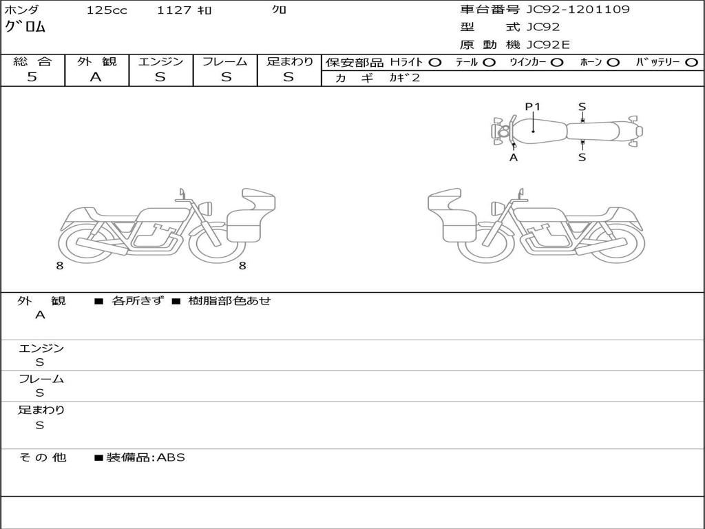 | Номер рамы / VIN | JC92-1201109 |