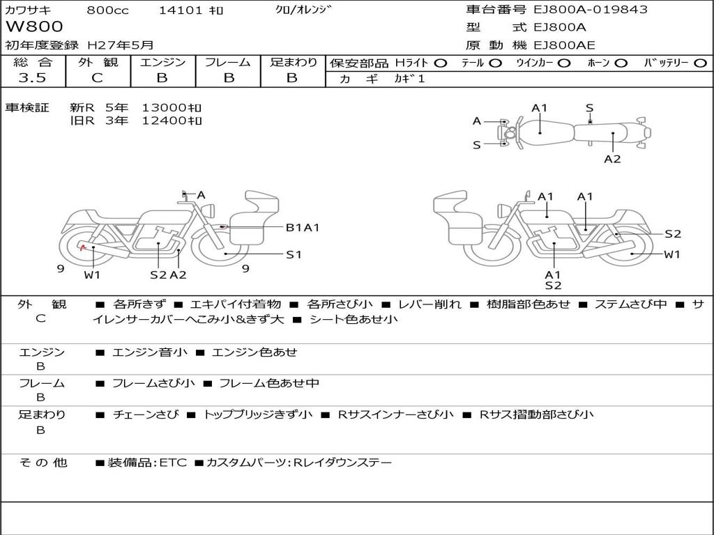 | Номер рамы / VIN | EJ800A-019843 |