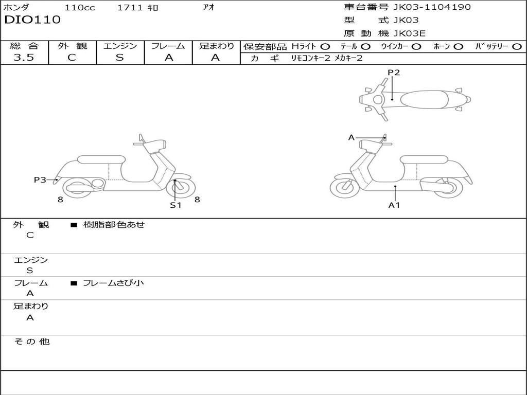 | Номер рамы / VIN | JK03-1104190 |