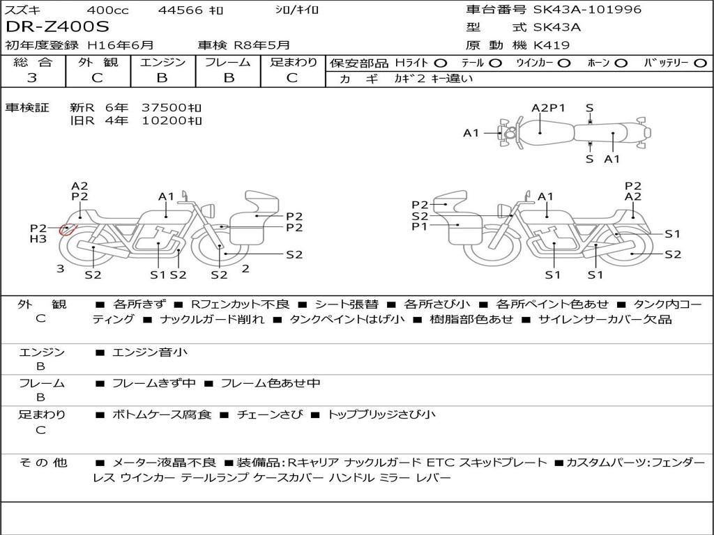 | Номер рамы / VIN | SK43A-101996 |