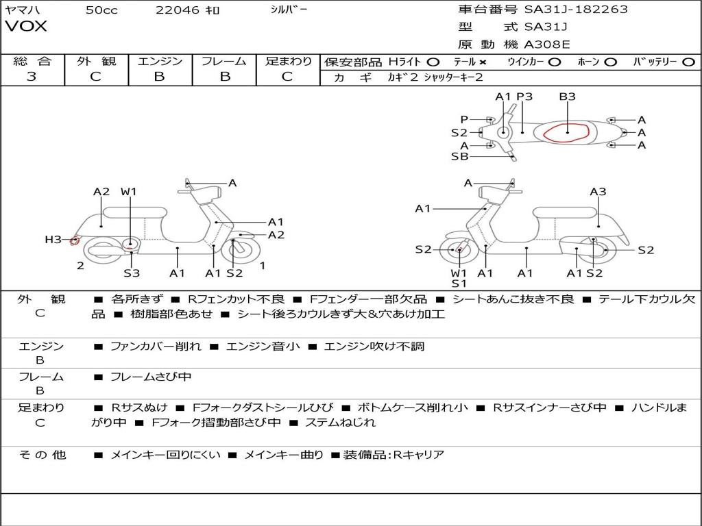 | Номер рамы / VIN | SA31J-182263 |