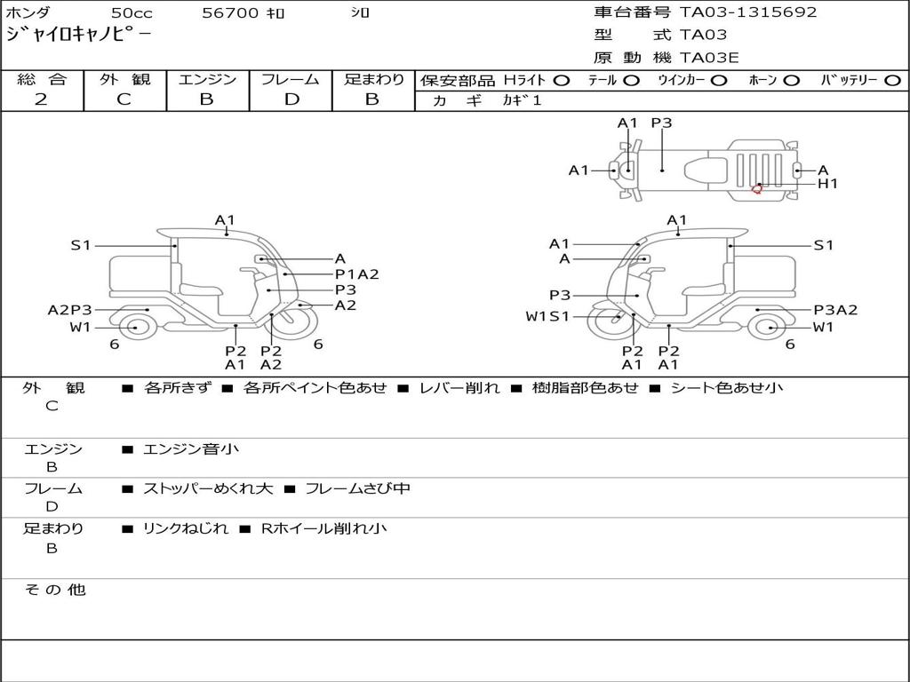 | Номер рамы / VIN | TA03-1315692 |