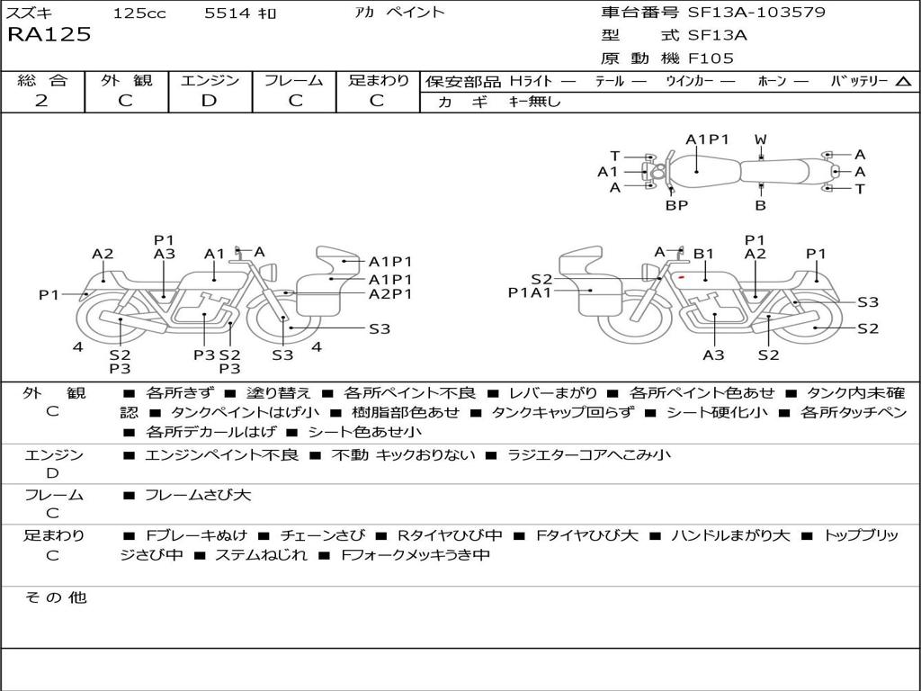 | Номер рамы / VIN | SF13A-103579 |