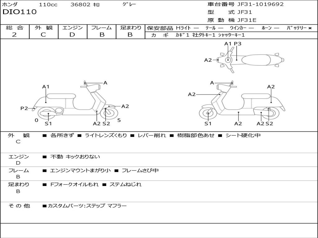 | Номер рамы / VIN | JF31-1019692 |