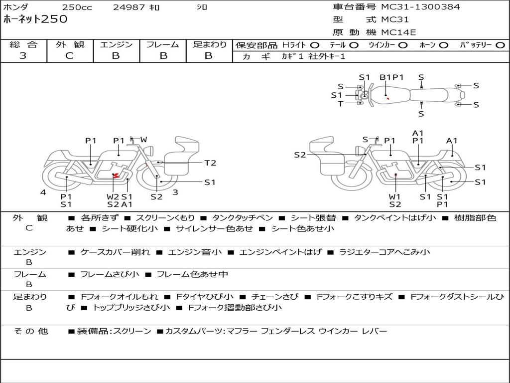 | Номер рамы / VIN | MC31-1300384 |