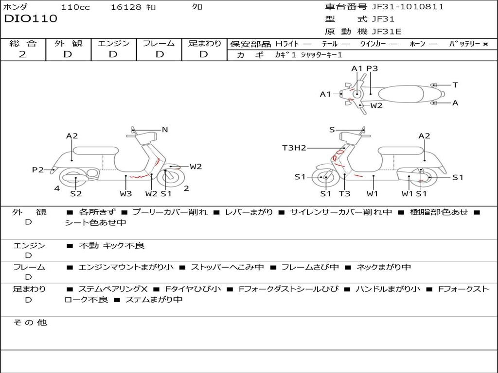 | Номер рамы / VIN | JF31-1010811 |