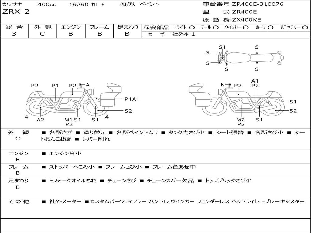 | Номер рамы / VIN | ZR400E-310076 |