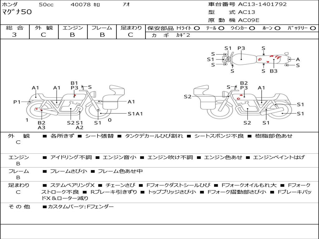 | Номер рамы / VIN | AC13-1401792 |