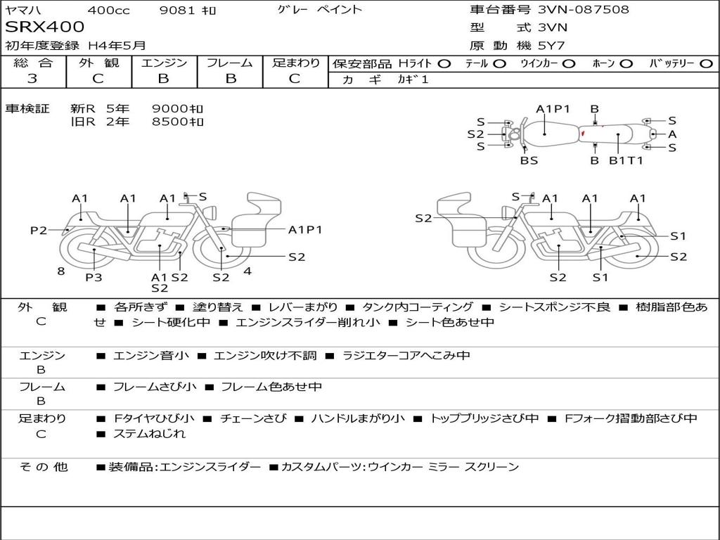 | Номер рамы / VIN | 3VN-087508 |