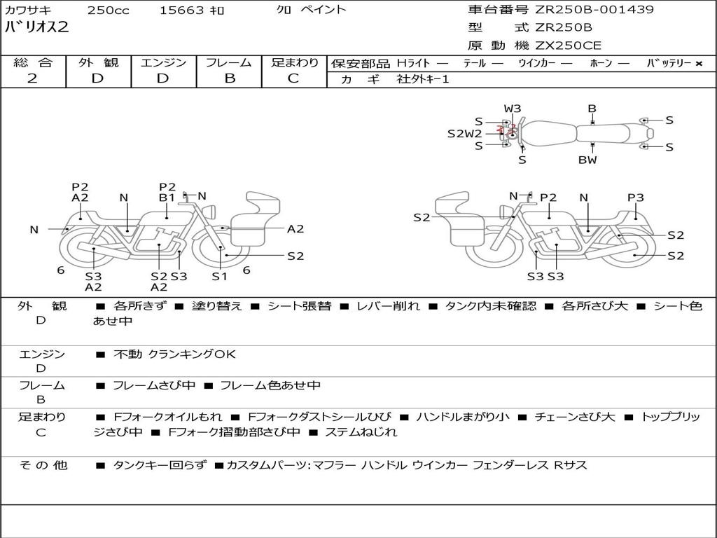 | Номер рамы / VIN | ZR250B-001439 |