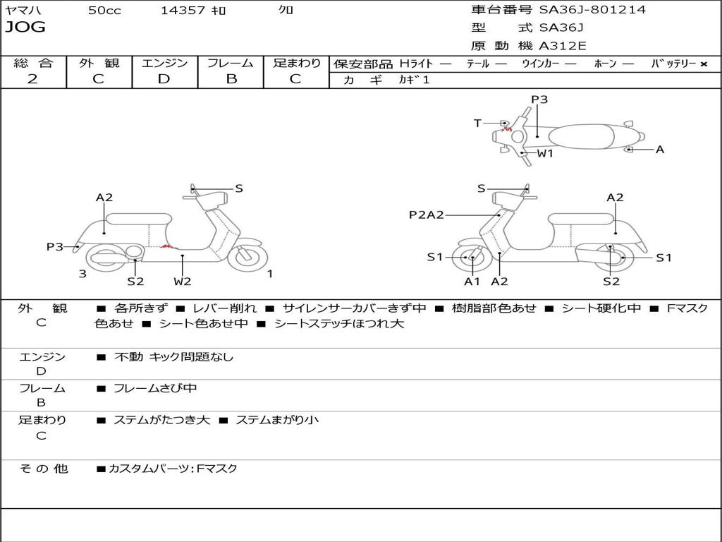 | Номер рамы / VIN | SA36J-801214 |