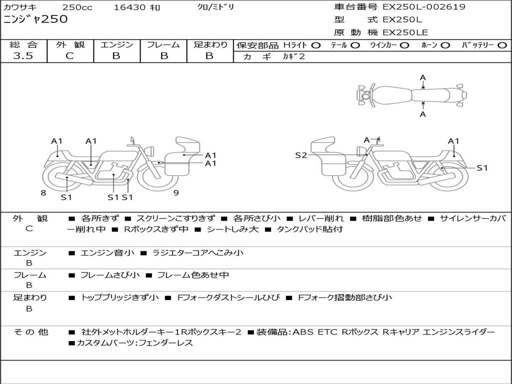 | Номер рамы / VIN | EX250L-002619 |