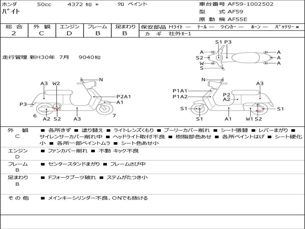 | Номер рамы / VIN | AF59-1002502 |