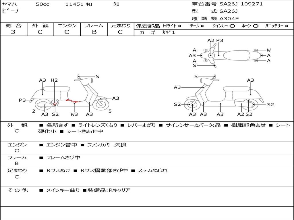 | Номер рамы / VIN | SA26J-109271 |