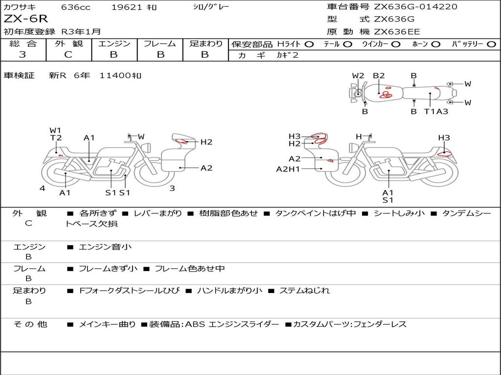 | Номер рамы / VIN | ZX636G-014220 |