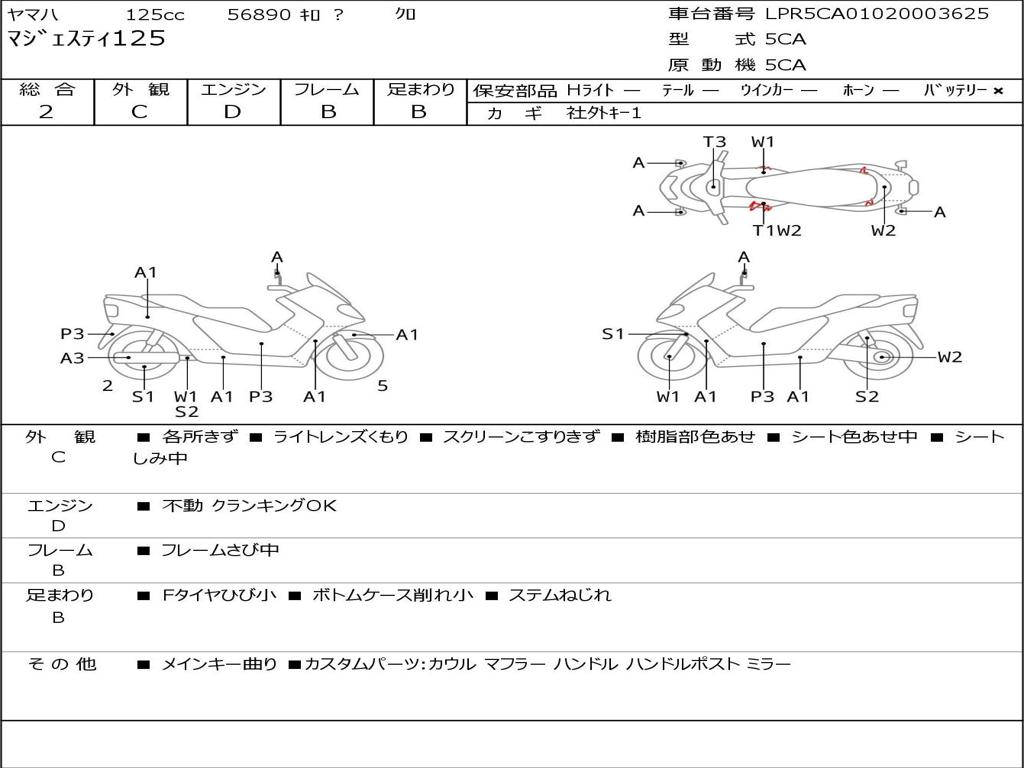 | Номер рамы / VIN | LPR5CA01020003625 |