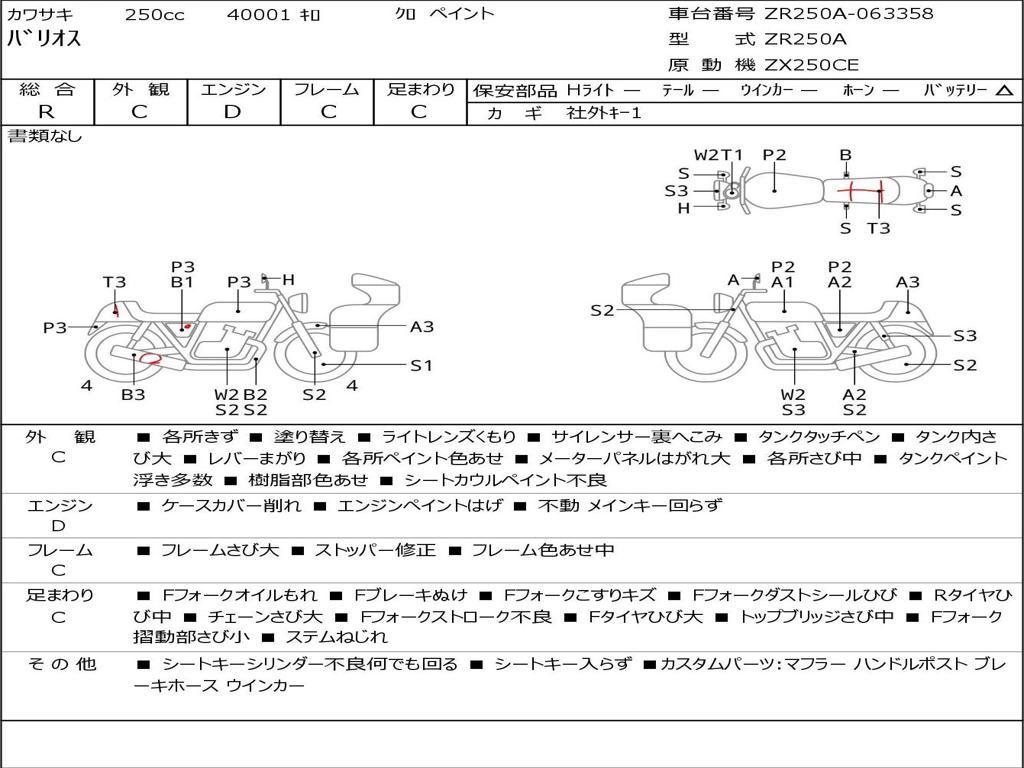 | Номер рамы / VIN | ZR250A-063358 |