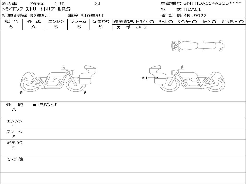 | Отметка об участии мотоцикла в авариях | Мотоцикл не участвовал в ДТП |