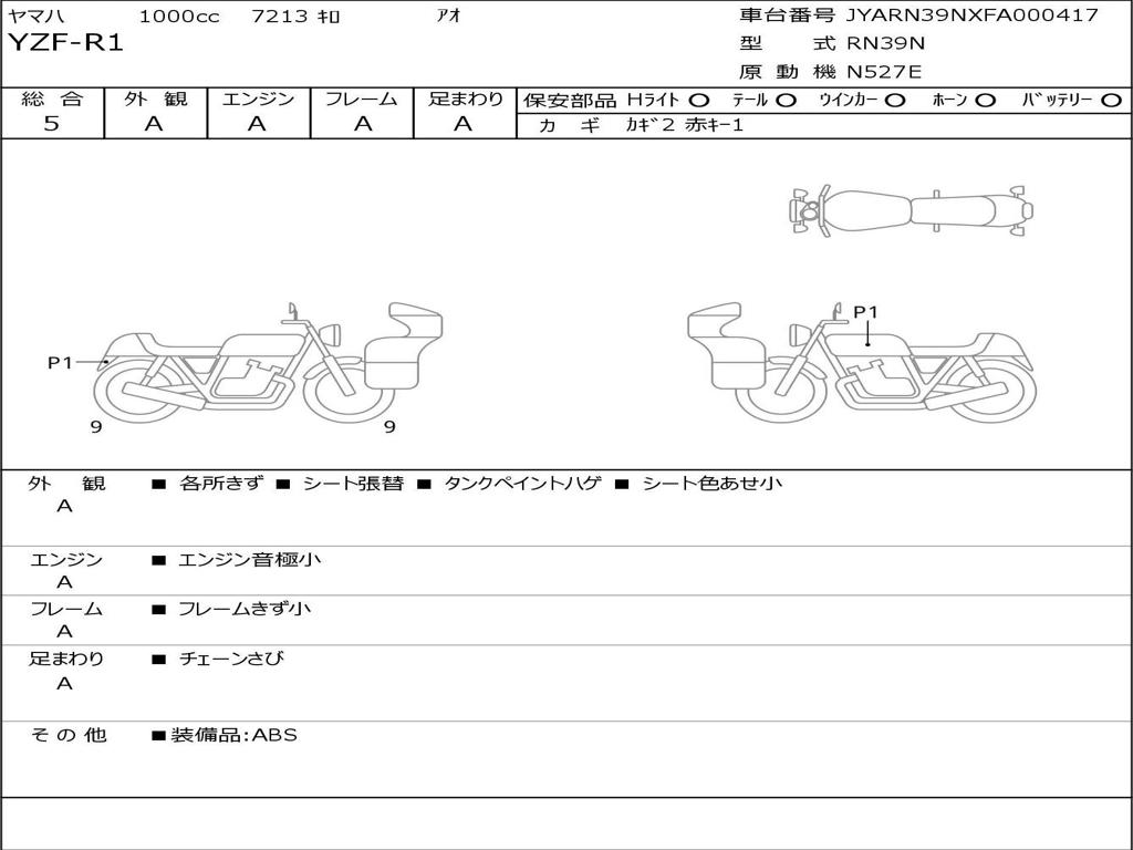 | Номер рамы / VIN | JYARN39NXFA000417 |
