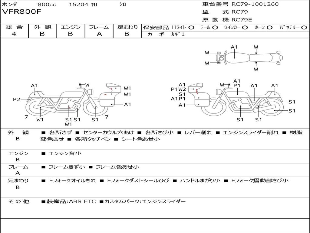 | Номер рамы / VIN | RC79-1001260 |